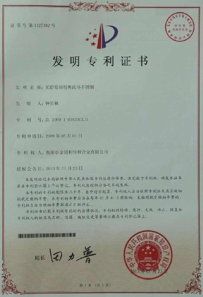衡陽市金則利特種合金股份有限公司成立于一九九九年十二月,注冊(cè)資本人民幣兩千兩百萬元。注冊(cè)地址:衡陽市雁峰區(qū)白沙洲工業(yè)園長塘路2號(hào)。公司主營耐蝕軟磁合金,為湖南省高新技術(shù)企業(yè)。公司自成立以來,即致力于耐蝕軟磁合金的研發(fā)。 研制出的JL-31(00Cr13si2Pb)、JL-31B(00Cr13si2)、JL-31BS(00Cr13Si2S)、JL-37B(0Cr17Si2)、JL-37(0Cr17···
